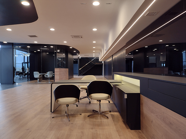 con un bar, mesas y sillones que hacen de la espera un momento de relax y confort. El asesor